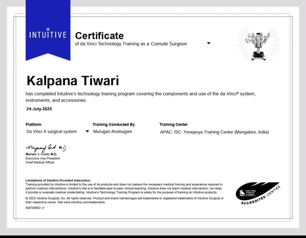 Dr. Kalpana Tiwari guided me through robotic surgery confidently. Recovery was fast and smooth.